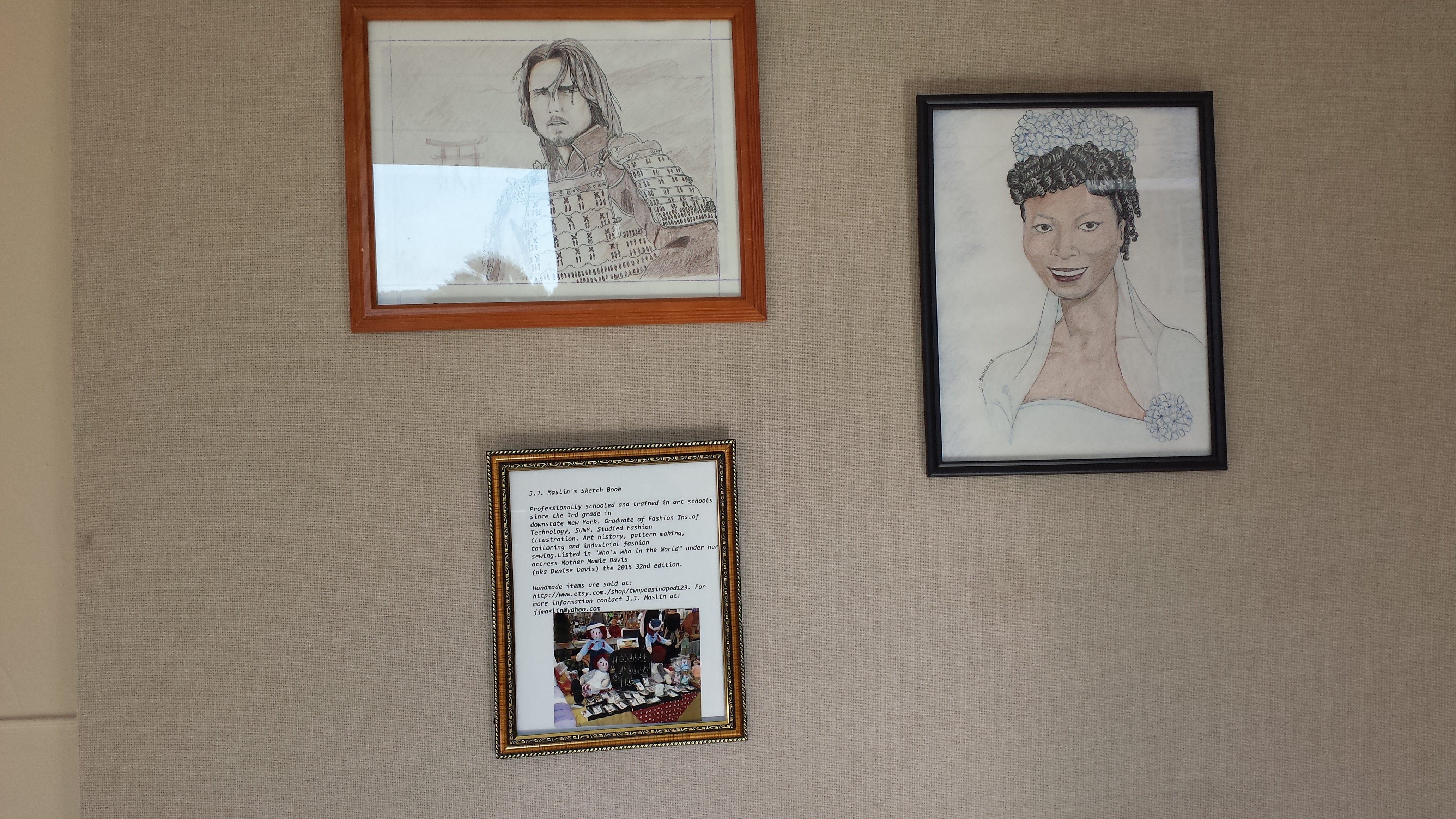 Here is Michael Jackson on display in Upstate New York along with my other drawings next to it. One is a fashion illustration and the other is of my Grandmother in the largest frame. To me she was the best Grandmother in the world, and I tried to honor her there in the gallery.