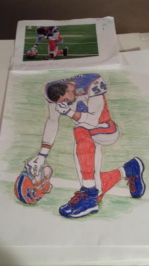 Here is a man who is a football player praying! These last two are the next two will be displayed in the next scheduled Art Gallery display. I am having fun coming up with new topics and things to draw.