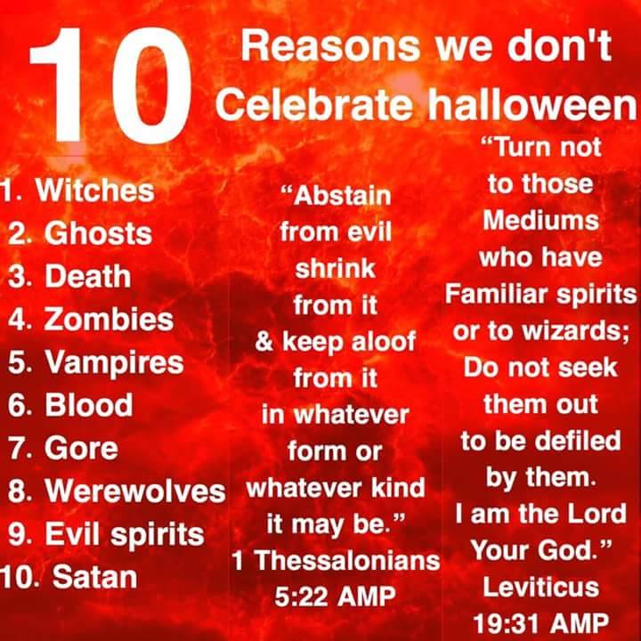 As I have noticed since a child, this holiday celebrated on the 31st of October every year seems to get more unneeded attention. I say unneeded because it is not of the will of our all mighty GOD. It does not praise GOD or give HIM the rightful thanks and glory.