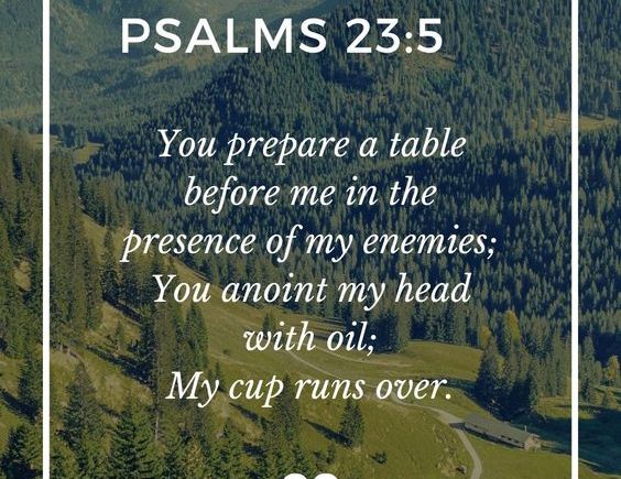 “Thou preparest a table before me in the presence of mine enemies: thou anointest my head with oil; my cup runneth over.”