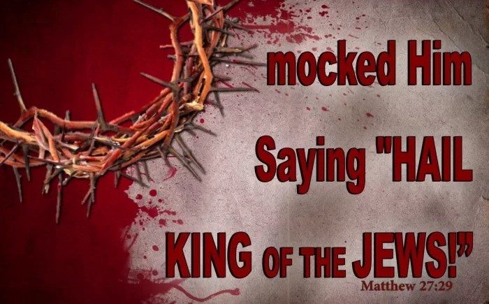 “And they smote him on the head with a reed, and did spit upon him, and bowing their knees worshipped him.”King James Version (KJV)