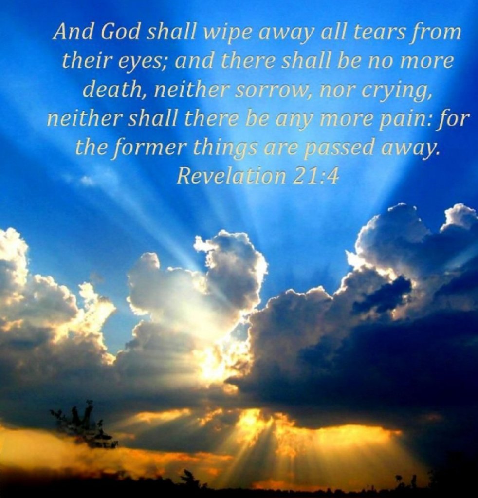 “And God shall wipe away all tears from their eyes; and there shall be no more death, neither sorrow, nor crying, neither shall there be any more pain: for the former things are passed away.”