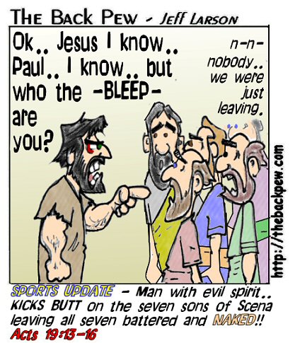 Until one man filled with evil spirits beat all 7 of for being fakes! Saying “I know JESUS, and I know Paul, but who are you?” Then he proceeded to violently attack all 7 men.