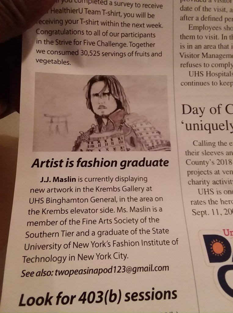 My artwork was not in a major big newspaper like the New York Times, but I am grateful for what I got. When the LORD wants it to be known, and how it is to be known HE will let me know. GOD is cool like that.
